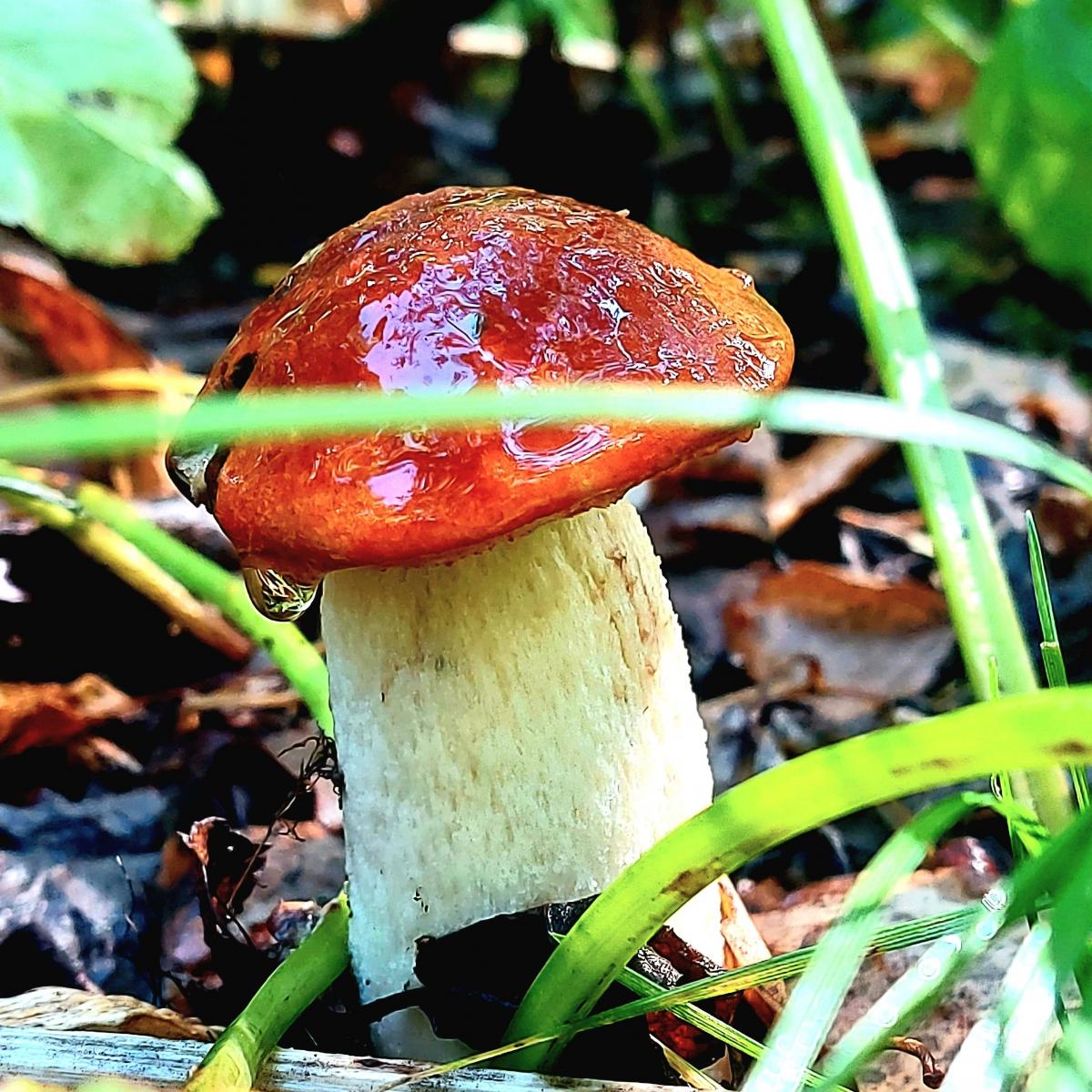 Капли дождя на шляпке гриба Розой он цветёт прелестной...