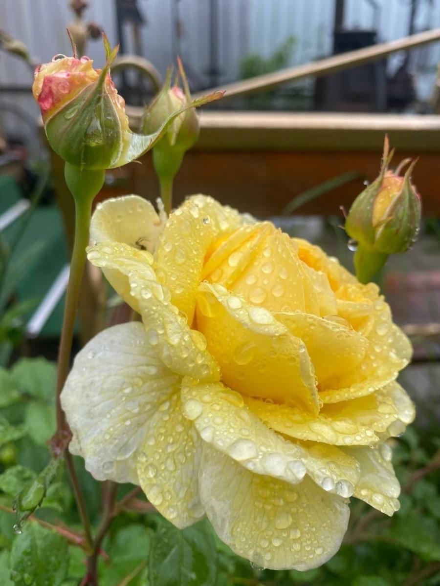 И тут двуногие заборов понаставили! Роза после дождя